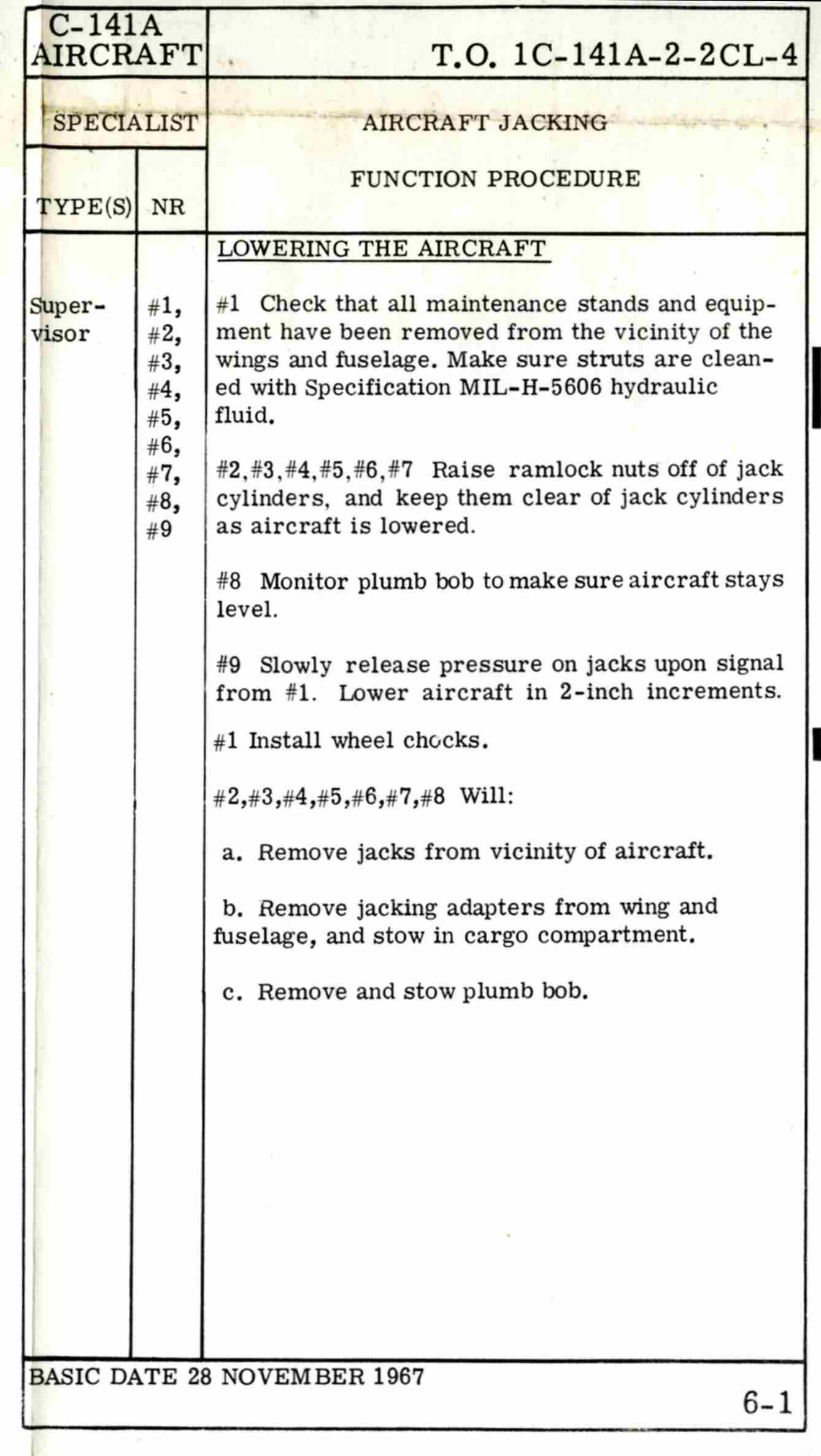 Late 1960's Era C-141a Crew Chief's Checklist