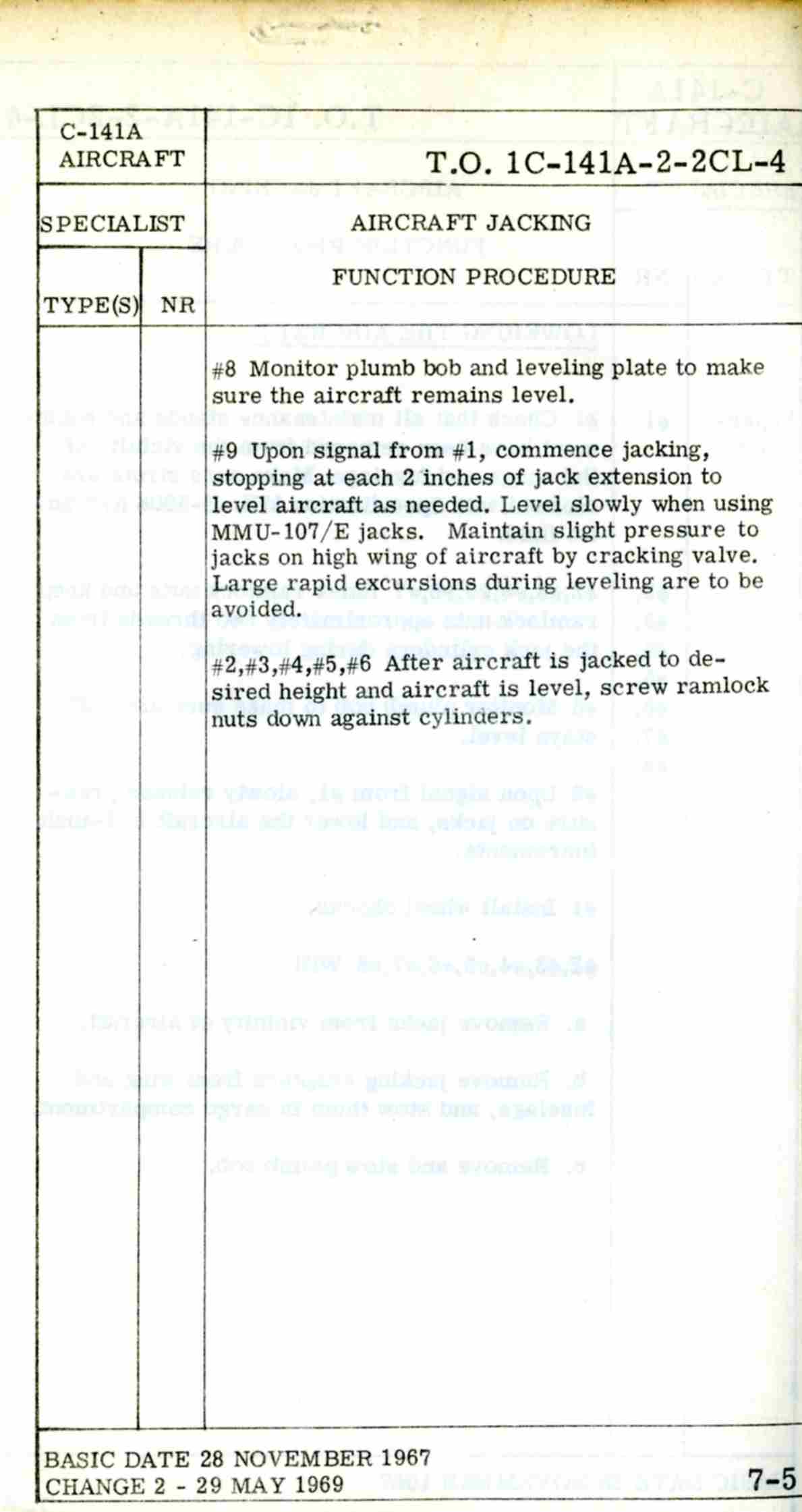 Late 1960's Era C-141a Crew Chief's Checklist