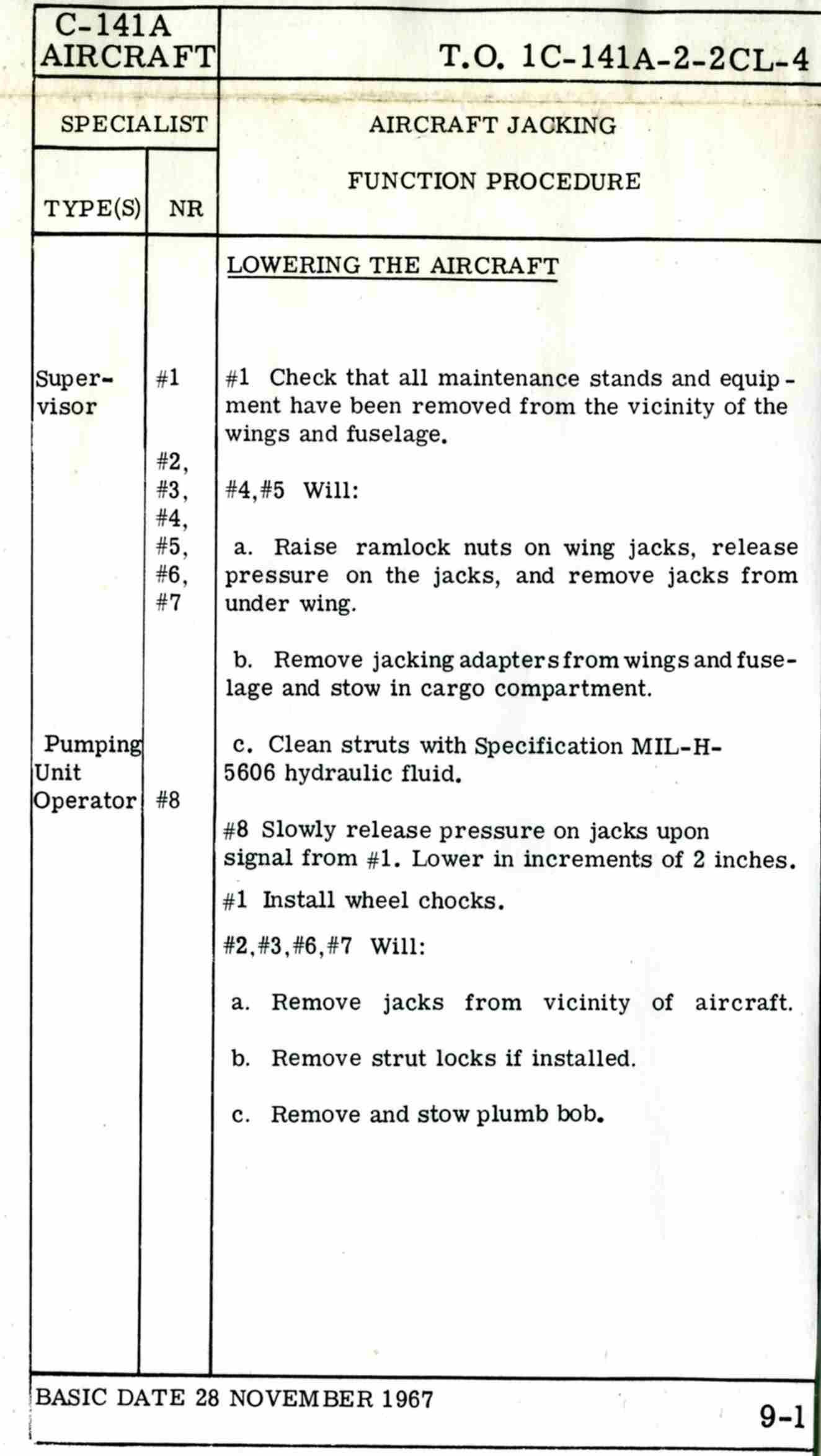 Late 1960's Era C-141a Crew Chief's Checklist