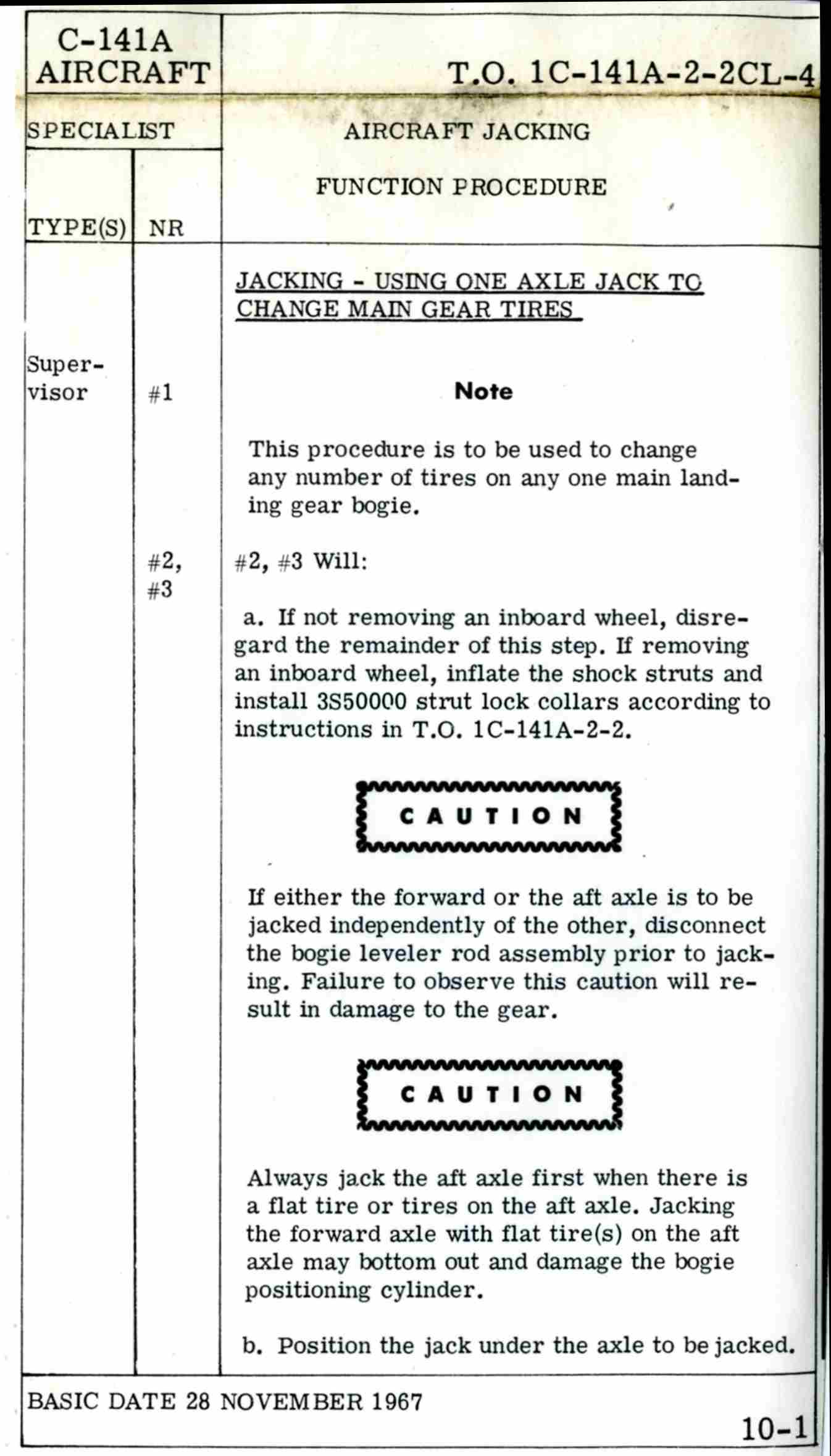 Late 1960's Era C-141a Crew Chief's Checklist