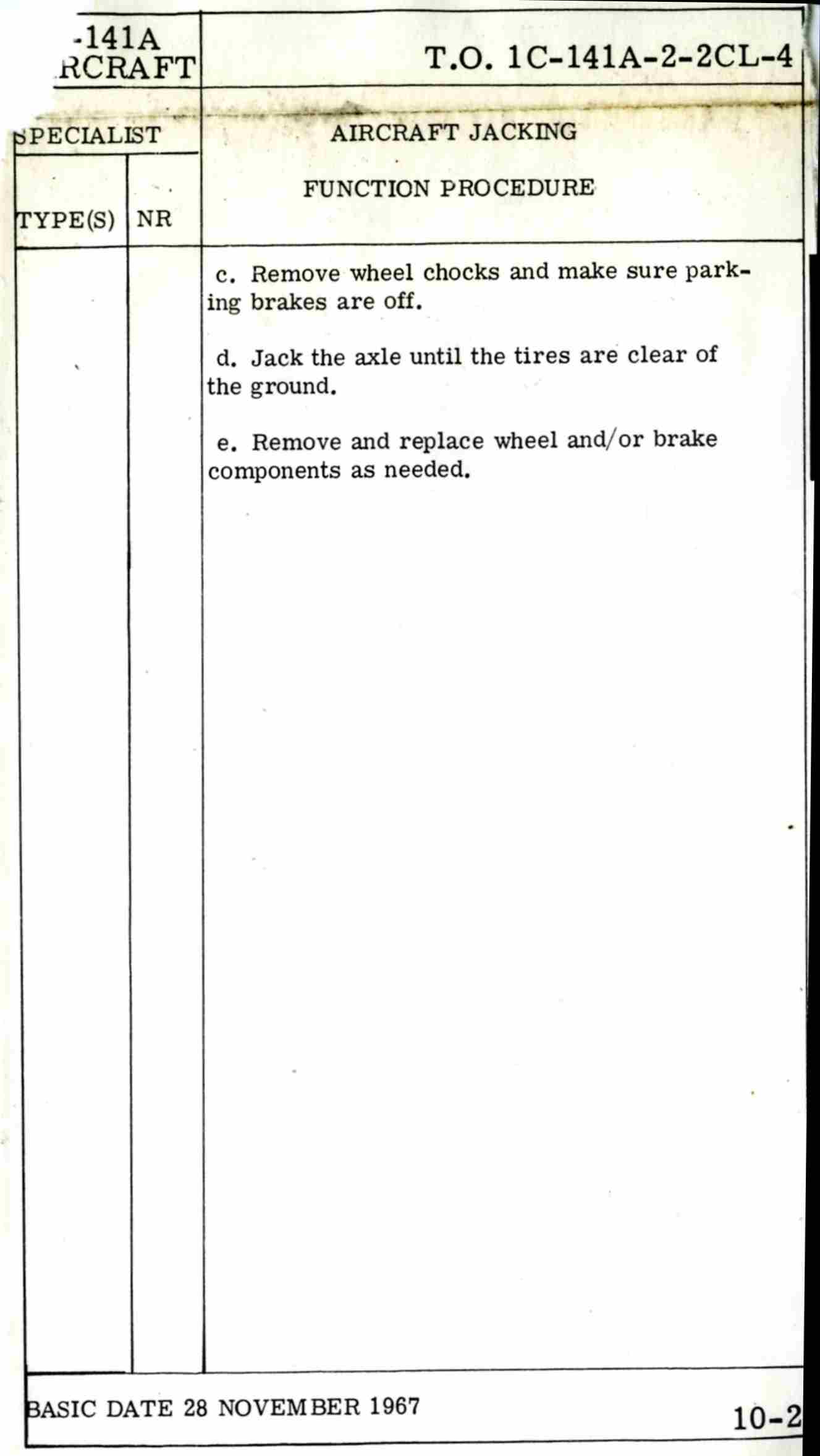 Late 1960's Era C-141a Crew Chief's Checklist
