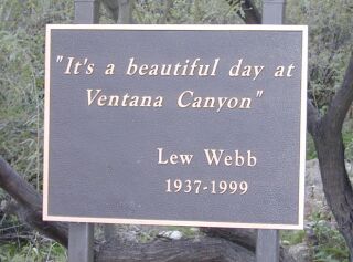 To our infinite dismay and sorrow, Lew died at the end of 1999 while showing a lot not far from ours. We never got to see him again once we decided to purchase the property we selected. However, a small memorial to Lew now stands across from his old office as you drive up he hill towards our lot. In November 2000 we visited for Thanksgiving, and passed by several times ... we thought of Lew every time and will continue to do so for years to come. Here's a photo of it:
