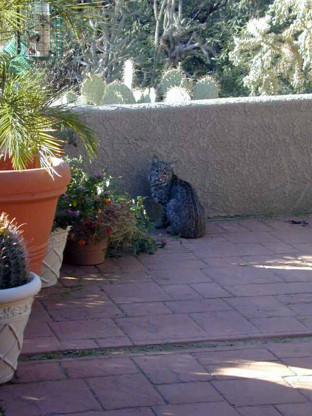 We also play host to a bobcat (we call him Bob) who likes to sit on our patio and grab birds from our feeder. He's not exactly tame, but certainly doesn't run away when he sees us.