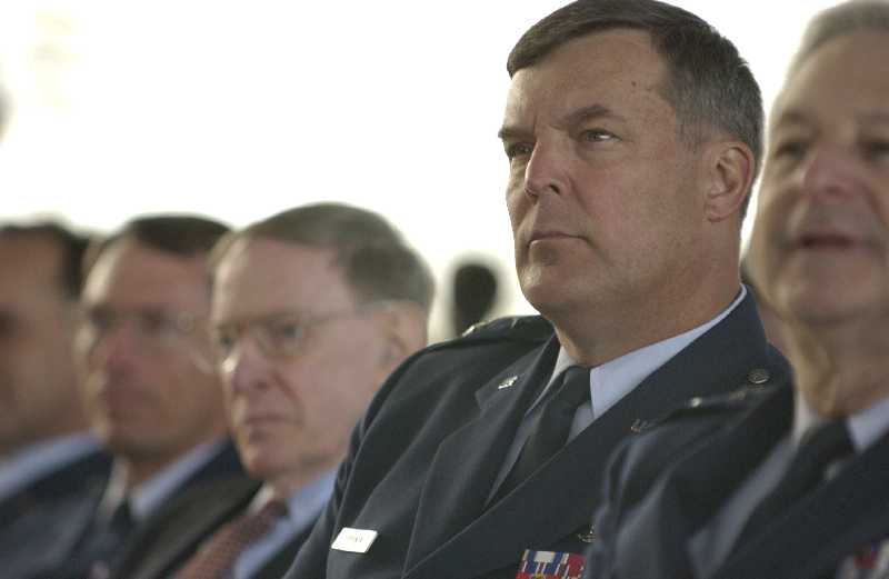 Major General Duignam and other guests sit for the ceremony of the retirement of the 'Hanoi Taxi'. More than 120 former POW's, from the Vietnam War and their families will help the 445th Airlift Wing retire the Air Forces's last C-141C Starlifter, the 'Hanoi Taxi was the first aircraft to arrive in February 1973 to pick up the POWs returning to the United States following repatriation.(U.S. Air Force photo by SSgt Hector Garcia, 4th Combat Camera)