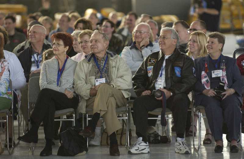 Former POWs gather for a reunion to assist the 445th Airlift Wing retire the Air Force's last C-141. the More than 120 former POW's, from the Vietnam War and their families will help the 445th Airlift Wing retire the Air Forces's last C-141C Starlifter, the 'Hanoi Taxi was the first aircraft to arrive in February 1973 to pick up the POWs returning to the United States following repatriation.(U.S. Air Force photo by SSgt Hector Garcia, 4th Combat Camera)