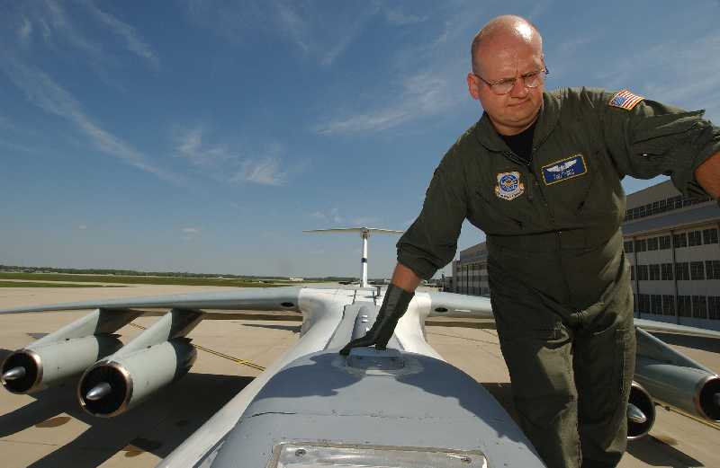 TSgt Phil Probst, a flight enigineer from the 89th Airlift Wing, climbs over the top of the last C-141C while performing a preflight check. More than 120 former POW's, from the Vietnam War and their families will help the 445th Airlift Wing retire the Air Force's last C-141C Starlifter, the 'Hanoi Taxi' tail number 660177, during ceremonies at Wright-Patterson AFB, Ohio, May 5th and 6th 2006. The Hanoi Taxi was the first aircraft to arrive in Hanoi in February 1973 to pick up the POWs returning to the United States following repatriation.(U.S. Air Force photo by TSgt Rick Sforza, 4th Combat Camera)