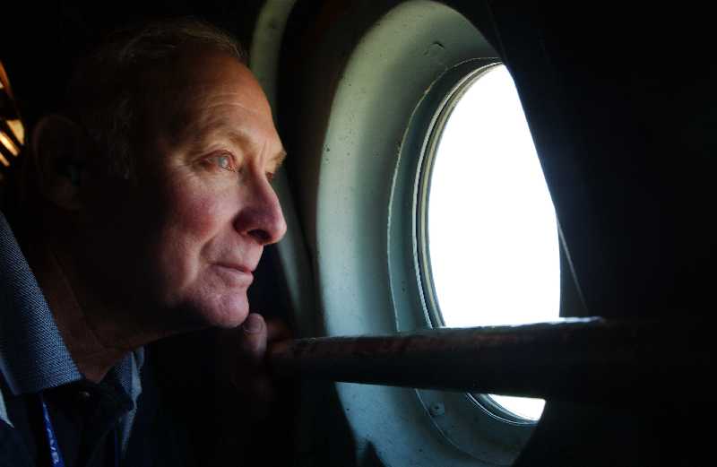 Former POW Paul Kari, looks out the troop door window aboard the 'Hanoi Taxi' during a POW reunion remembrance flight. Kari was onboard the 'Hanoi Taxi' when it left Vietnam. More than 120 former POW's, from the Vietnam War and their families will help the 445th Airlift Wing retire the Air Force's last C-141C Starlifter, the 'Hanoi Taxi' tail number 660177, during ceremonies at Wright-Patterson AFB, Ohio, May 5th and 6th 2006. The Hanoi Taxi was the first aircraft to arrive in Hanoi in February 1973 to pick up the POWs returning to the United States following repatriation.(U.S. Air Force photo by TSgt Rick Sforza, 4th Combat Camera)