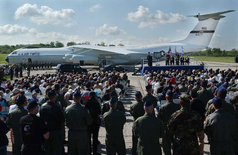 'Hanoi Taxi' taxies does a final fly-by over the National Museum of the United States Air Force during the C-141 Turnover Ceremony. The first aircraft (C-141 Starlifter) to return Vietnam prisoners of war to the United States makes its final landing Saturday May 6, 2006, at the National Museum of the United States Air Force. The C-141 :Hanoi Taxi' was the first aircraft to arrive in Hanoi in February 1973 to pick up the POWs held by the North Vietnamese. (U.S. Air Force photo by SSgt Hector Garcia, 4th Combat Camera)
