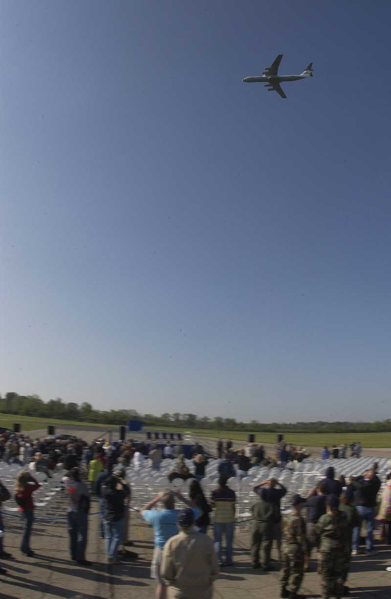 'Hanoi Taxi' taxies does a final fly-by over the National Museum of the United States Air Force during the C-141 Turnover Ceremony. The first aircraft (C-141 Starlifter) to return Vietnam prisoners of war to the United States makes its final landing Saturday May 6, 2006, at the National Museum of the United States Air Force. The C-141 :Hanoi Taxi' was the first aircraft to arrive in Hanoi in February 1973 to pick up the POWs held by the North Vietnamese. (U.S. Air Force photo by SSgt Hector Garcia, 4th Combat Camera)