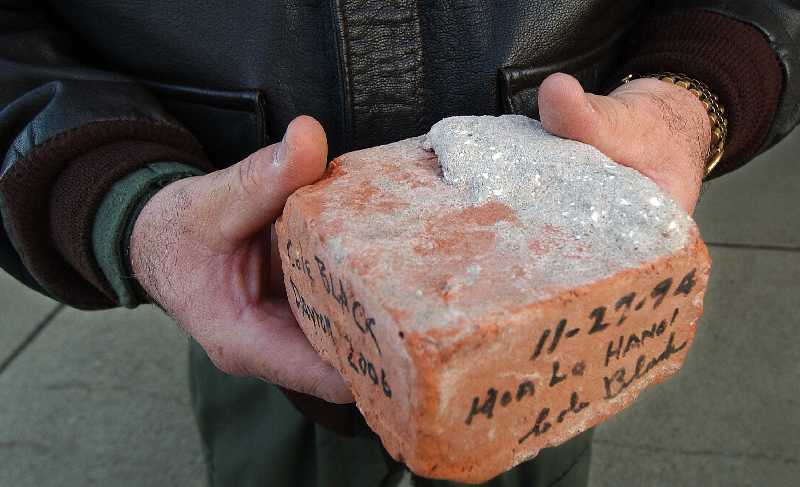Aircrew from the 'Hanoi Taxi' will carry this brick from the Hanoi Hilton when the C-141C Starlifter makes its final flight. The first aircraft, a C-141 Starlifter, to return Vietnam prisoners of war to the United States makes its final landing Saturday May 6, 2006 at the National Museum of the United States Air Force. The C-141 'Hanoi Taxi' was the first aircraft to arrive in Hanoi in February 1973 to pick up the POWs held by the North Vietnamese.(U.S. Air Force photo by TSgt Rick Sforza, 4th Combat Camera)