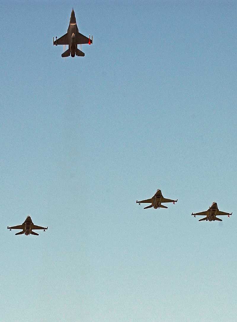 F-16's from the 178th Fighter Wing, Springfield Air National Guard Base fly a 'Missing Man' formation over the C-141 Final Flight and Turnover Ceremony at the National Museum of the United States Air Force. The first aircraft, a C-141 Starlifter, to return Vietnam prisoners of war to the United States makes its final landing Saturday May 6, 2006 at the National Museum of the United States Air Force. The C-141 'Hanoi Taxi' was the first aircraft to arrive in Hanoi in February 1973 to pick up the POWs held by the North Vietnamese.(U.S. Air Force photo by TSgt Rick Sforza, 4th Combat Camera)