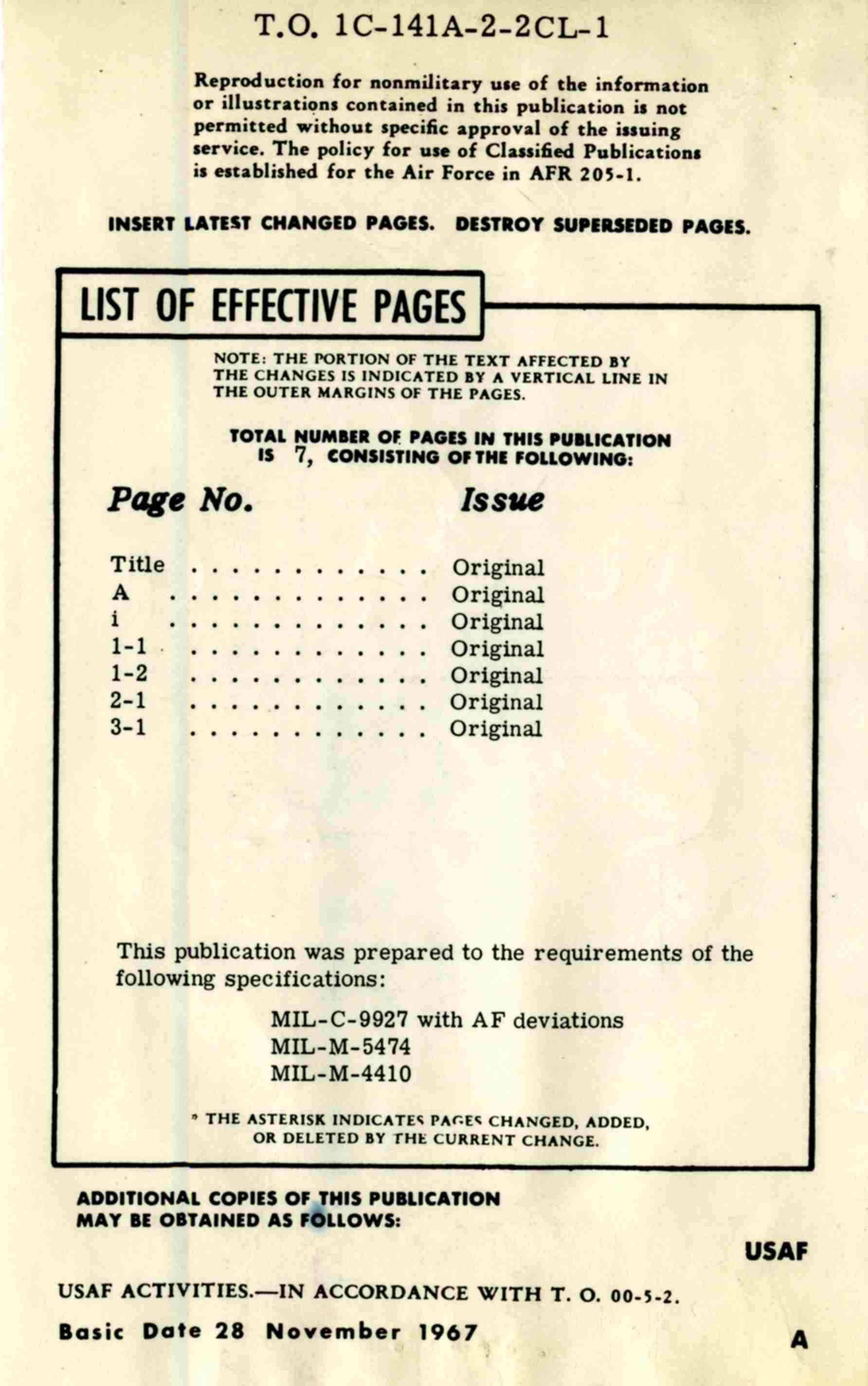 Late 1960's Era C-141a Crew Chief's Checklist