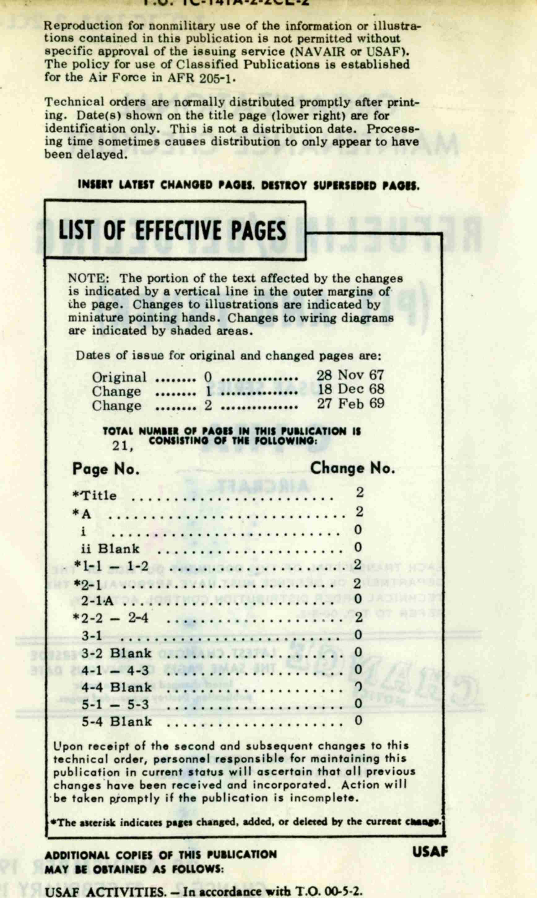 Late 1960's Era C-141a Crew Chief's Checklist