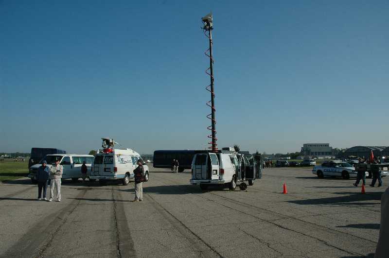 The news trucks were present.