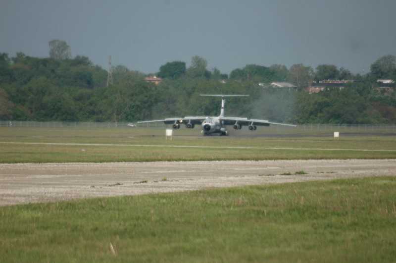 Thrust Reversers out .... starting to kick up a bit of dust from the runway.