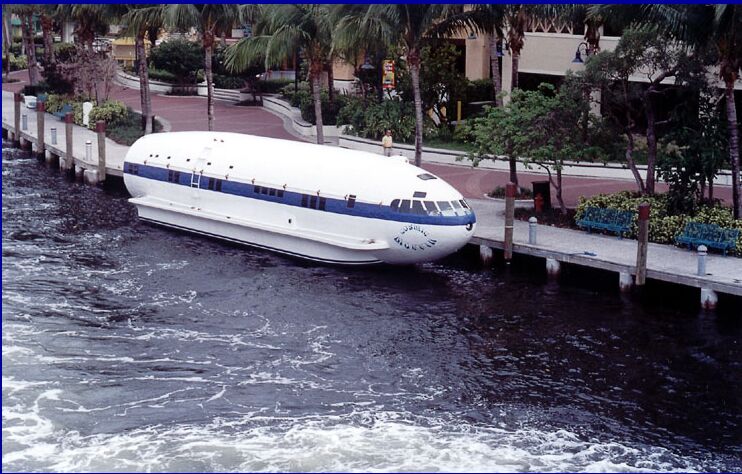 This is an old Boeing 307 airliner that was once owned by Howard Hughes. Someone with too much money and time on their hands made it into a boat.