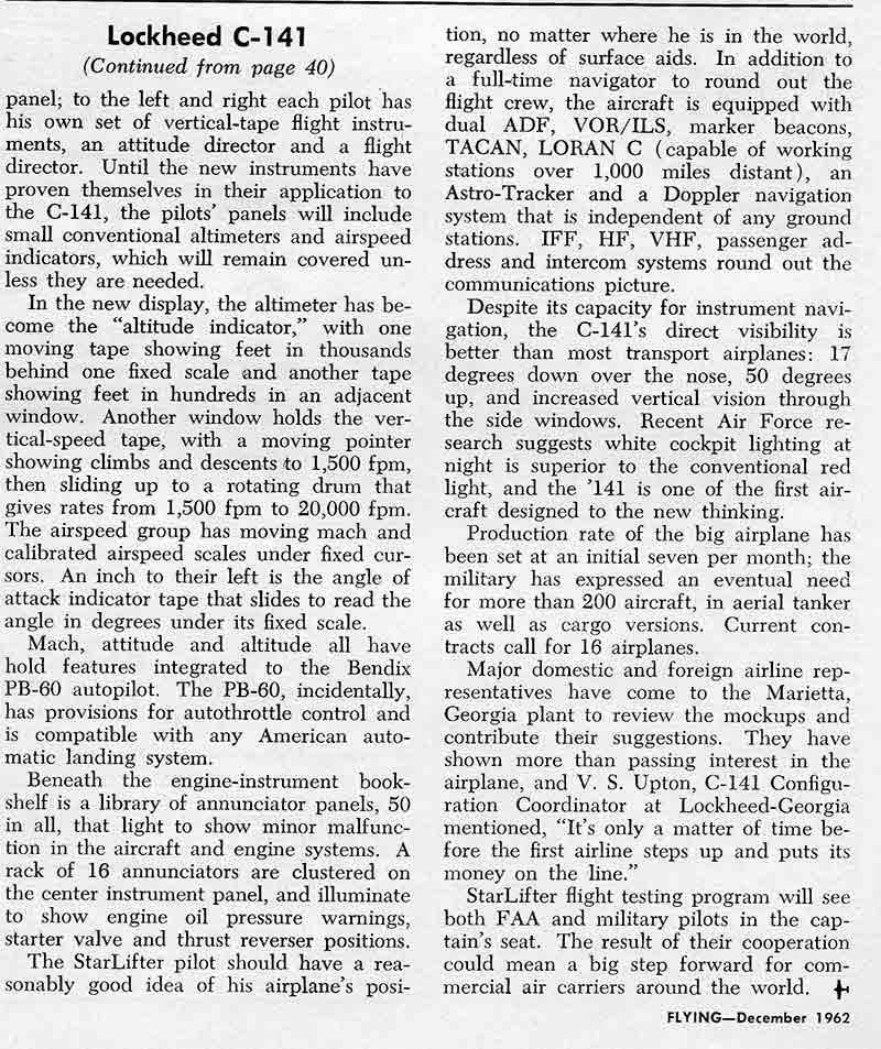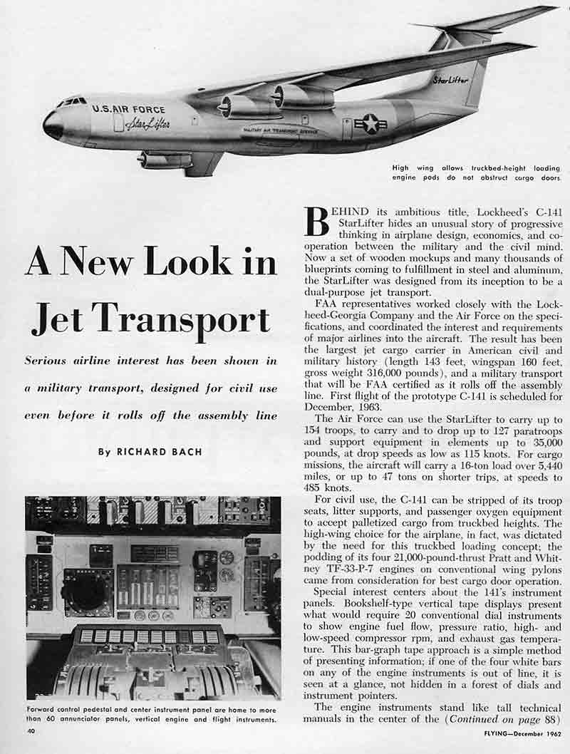 Below you will find copies of a few pages, including the cover, of the December, 1962 issue of Flying Magazine. It is interesting to note how optimistic Lockheed was about selling the aircraft to commercial carriers, which of course, never happened.