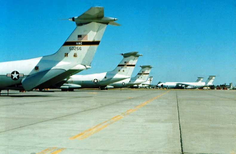 On the ramp at Travis AFB along side a few of her friends. Tail 65-0242 is in the