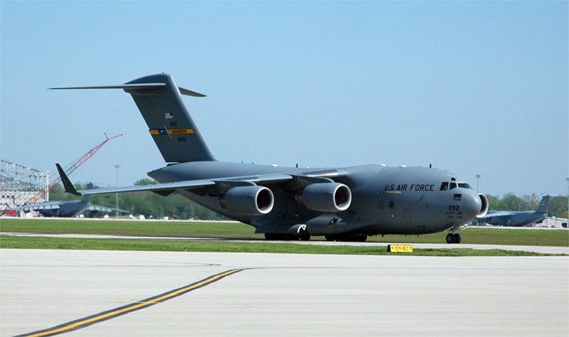 A C-17 full of C141 Farewell revelers arrives from Chaleston.
