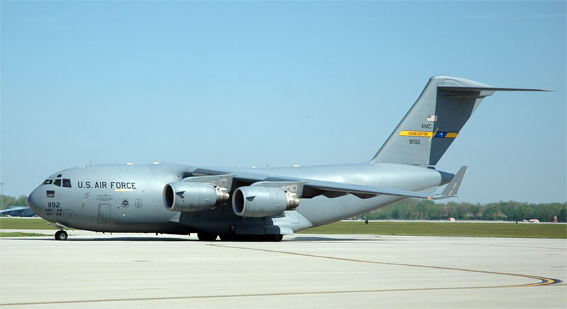 A C-17 full of C141 Farewell revelers arrives from Chaleston.