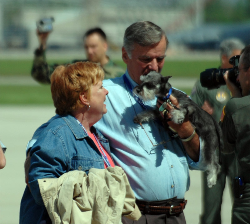 Ed Davis and his wife and thier puppy Sophia. Ed carried Sophia on the POW flight.