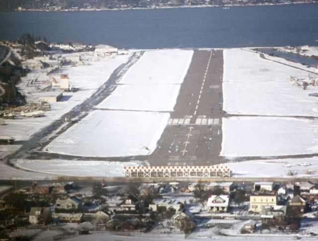 I was down at Renton field one day preparing for a solo flight and after I had called ground control for taxi permission they told me not to even start my engine until they gave me the OK. A few seconds later, the Air Force One aircraft went zooming off the runway to the north towards Mercer Island. After reading Don's story it seems like a good bet that this was the same aircraft on the same day. I've no way to prove it, but the timing seems right. Here's a shot of the runway at Renton:
