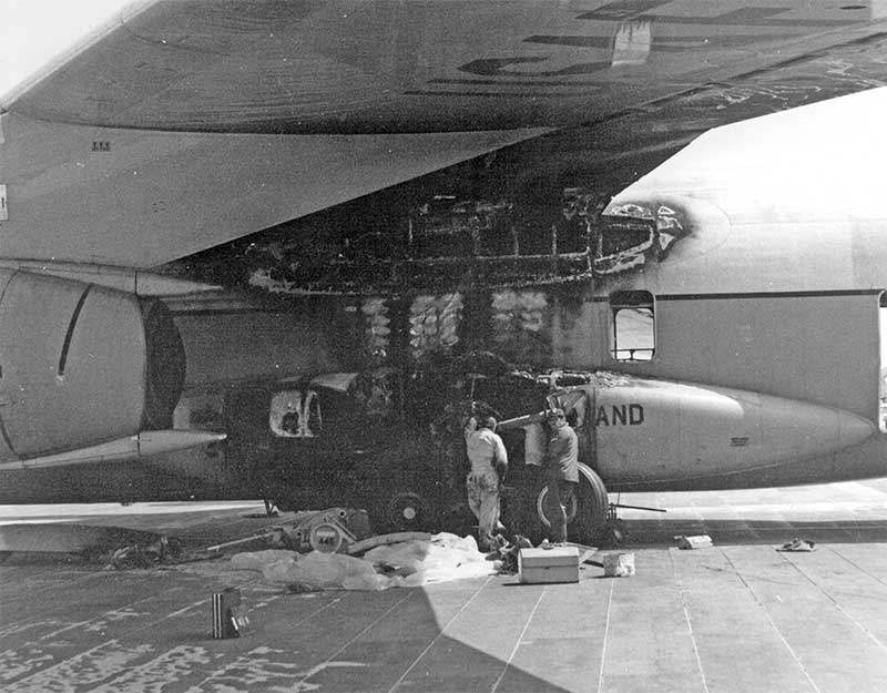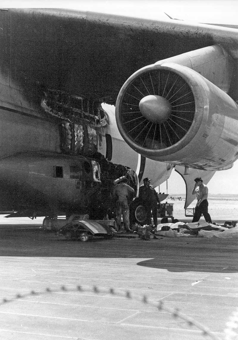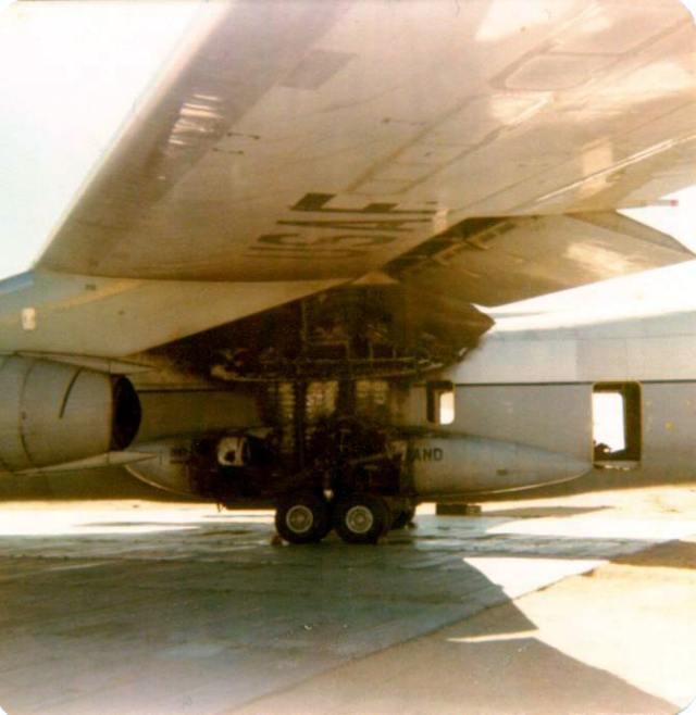 Some updated info on the fire on the ground from the brake failure. It happened at 29 Palms MCAS in California. I know because I was there serving my mandatory tour as a SOF for the ALCE just after my AC upgrade in the summer of 1976. I was on duty that day when the aircraft taxied in and switched to emergency brakes and ignited a huge fire. I jumped into the aircraft that was parked just in front of the burning bird and told that crew to start two engines and taxi farther away so we wouldn't lose two C-141s. Fortunately, the fire was extinguished, but not before it had done major damage to the left wheel pod and the left wing root area, which was melted down to the spars from the heat. It was stuck on the ground for many months while the Lockheed engineers beefed it up for a flight to depot to be fixed. I have some pictures of the end result at home in one of my albums, which I will scan and email to you also. ---- Lt Col (Ret) Bob Wicke