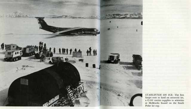 LESS THAN FOUR YEARS after the Golden Bear, the first operational C-141, went into squadron service at Travis, a ship of the StarLifter fleet, now grown to 284 planes, passed "the millionth hour in the air. The plane by now had proved it could do all the work it was designed to do. It had lifted thousands of tons of general cargo over millions of miles to resupply U.S. troops abroad. It had transported the troops themselves-up to two brigades of Army combat soldiers, with all their battle gear -in fast "Big Lifts" to Vietnam, Korea, and Germany. With its cabin fitted out with stanchions to which litters could be hung, it had brought back the sick and wounded, transporting them in nine hours to hospitals in the States. It had begun aerial service to the Deep Freeze scientists at the South Pole, becoming the first fanjet to land on the Antarctic ice. In an incredible 23,000-mile round trip, a StarLifter had flown from Travis to Vietnam to New Zealand to Travis in two and one half days, carrying troops to Vietnam and supplies to Christchurch for the Polar explorers. And twice a week, on regular scheduled flights, it had girdled the world on grinding five-day trips to serve U.S. Embassies abroad. In the words of Walter L. Krause, Star-Lifter historian, "the C-141 gives us a flexibility that is the core of a new national strategy. It can go anywhere, carry out any mission, in war, or peace. The plane, in short, can hack it."