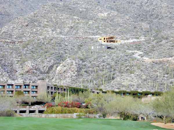 Looking up from the Canyon Course, hole 18, right in front of Loews
