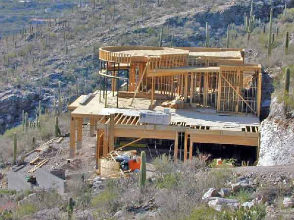 be surrounded by a screen wall under the stairs that will be the main entry to the house on the south side.