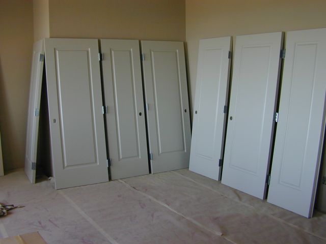 Painters have done most of their work. This is a few of the doors lined up in a row in Candace's office.