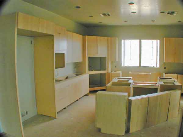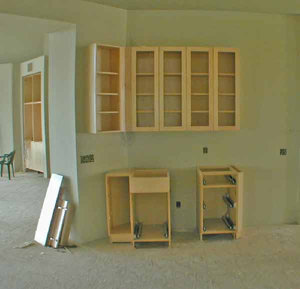 A few days later and most of the kitchen cabinets are installed. The large pile in the middle is the rough outline