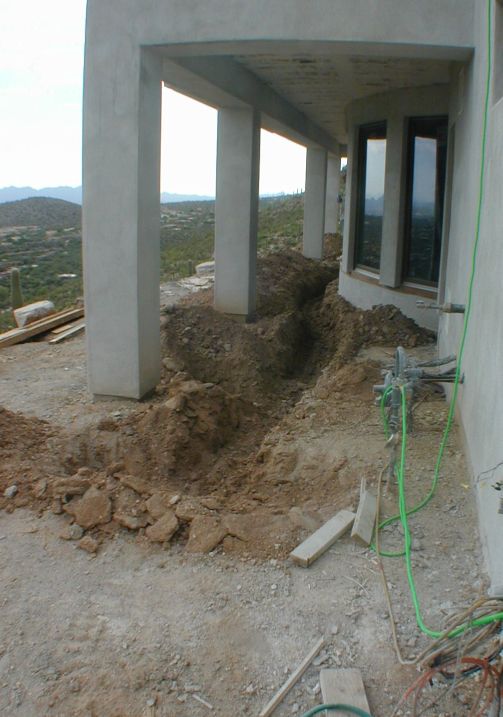 The beginnings of a trench for a spa on the west side of the property. This trench will carry electricity and