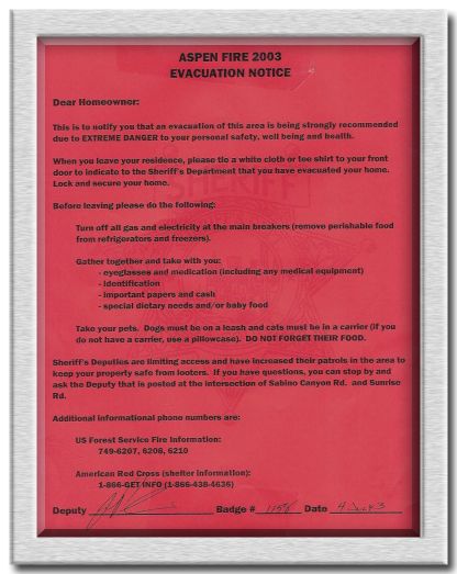 The Fire Department recommended that the entire area be evacuated. We found this notice pinned on our door (at our