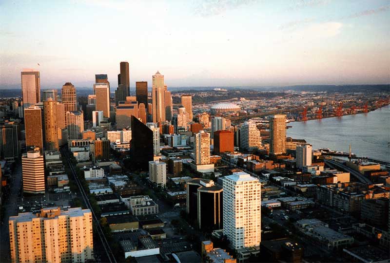 Downtown Seattle. If you look hard you can see the Space Needle just about in the center of the photo.